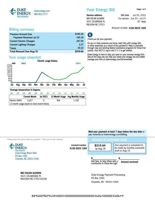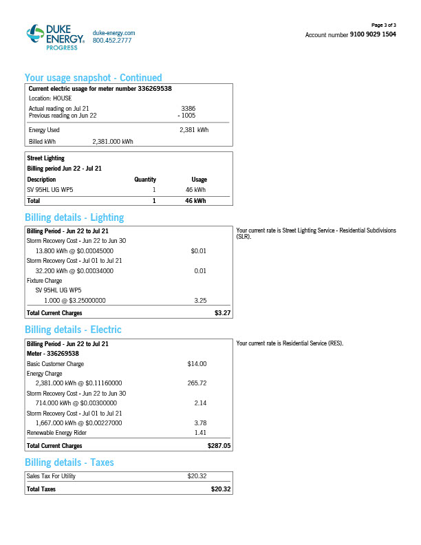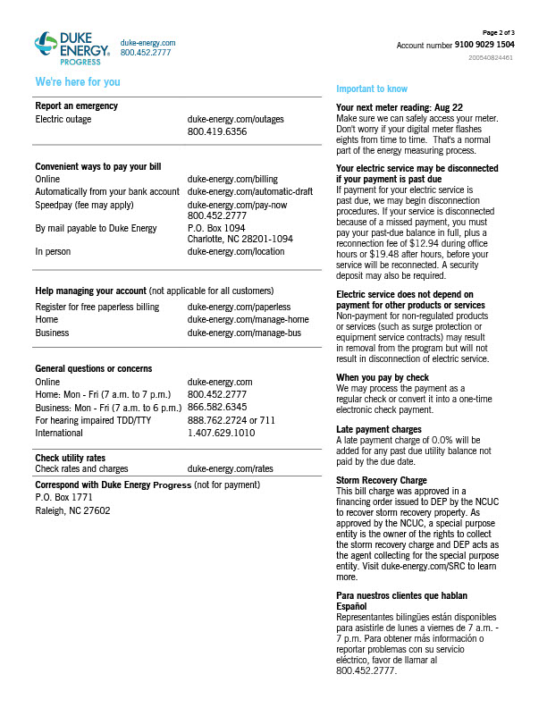USA Duke Energy Editable Electricity Bill Template in Word and PDF formats 3 page