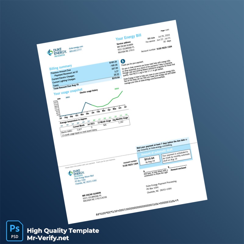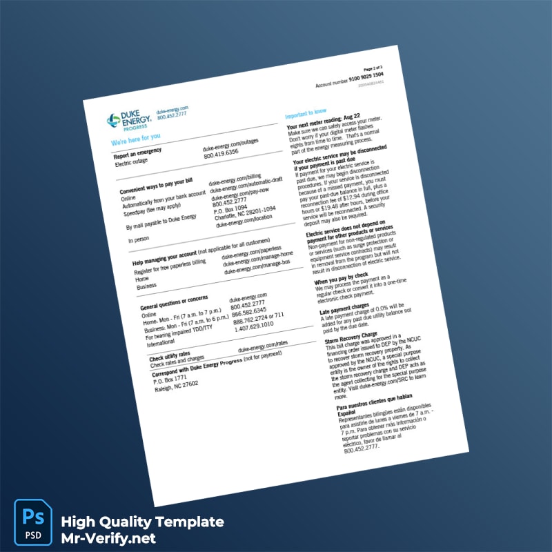 Introducing the USA Duke Energy Editable Electricity Bill Template—your ultimate tool for obtaining a professional and reliable proof of address seamlessly. Designed in both Word and PDF formats, this template will help you overcome any challenge related to lost or expired documents.