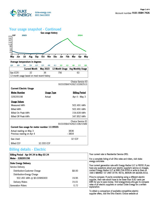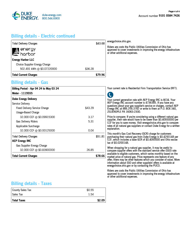 USA Duke Energy Editable Natural Gas Bill Template in Word and PDF Formats