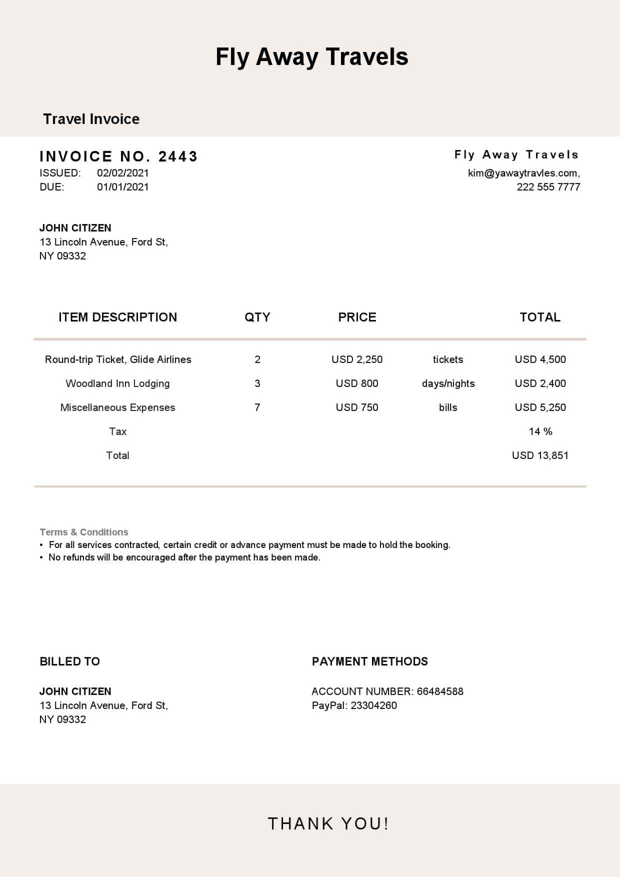 USA Fly Away Travels Invoice Template for Efficient and Professional Business Operations