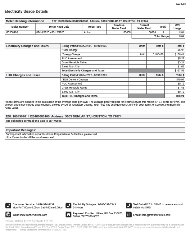 USA Frontier Utilities Editable Utility Bill Template in Word and PDF formats 2 page