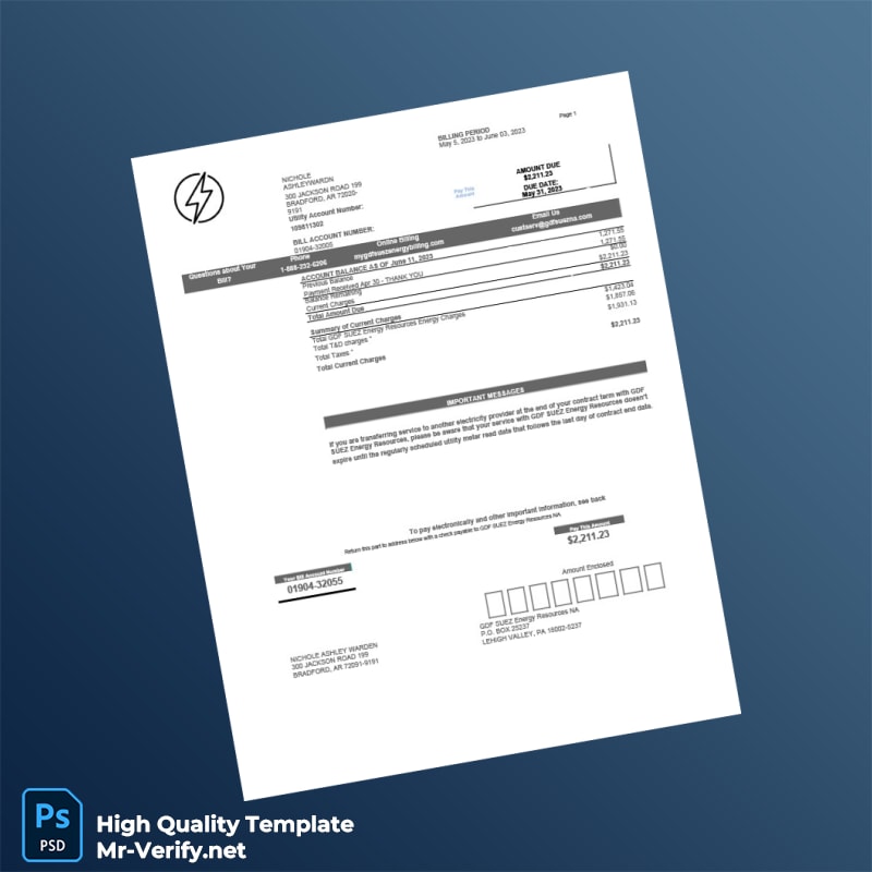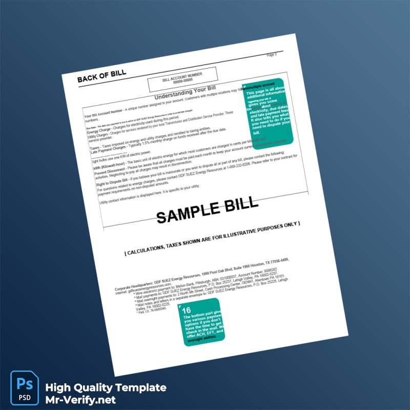 The USA GDF SUEZ Energy Resources Editable Utility Bill Template in Word and PDF formats is your ultimate solution for a professional and authentic proof of address. Designed for users who require quick replacements for lost documentation, this template caters to a global audience of creative and technical professionals, ensuring seamless adaptability to individual needs.