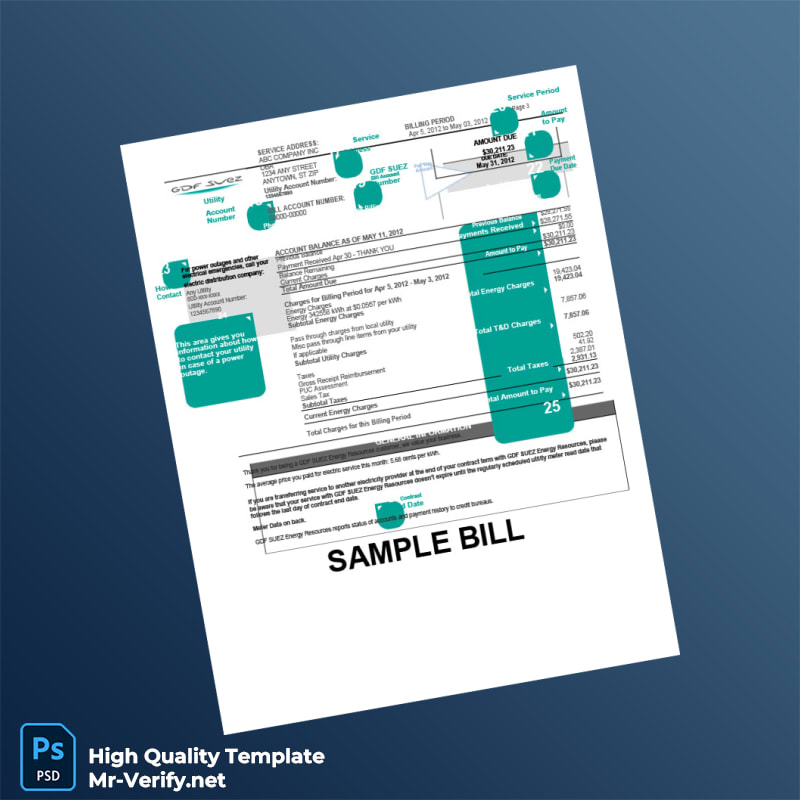 The USA GDF SUEZ Editable Utility Bill Template offers: