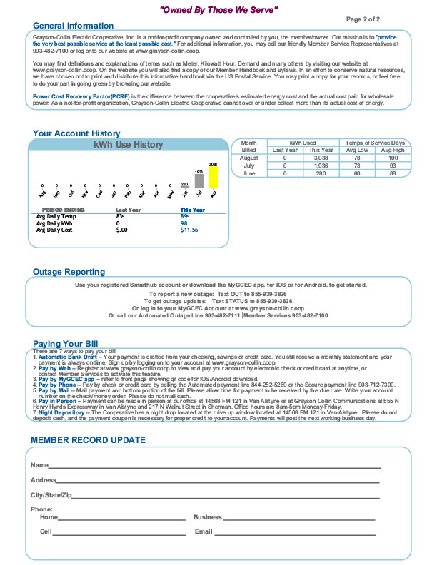USA Grayson-Collin Electric Cooperative Editable Electricity Bill Template