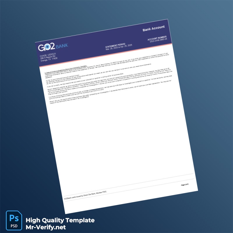 Be the first to review “USA Green Dot Bank Statement Template in Word and PDF formats 2 page”