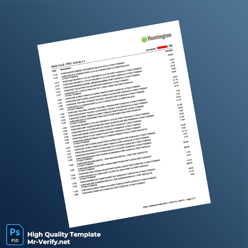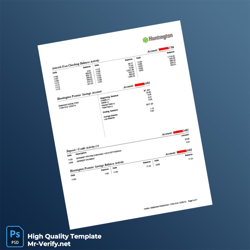 USA Huntington National Bank Statement Template in Word and PDF Formats