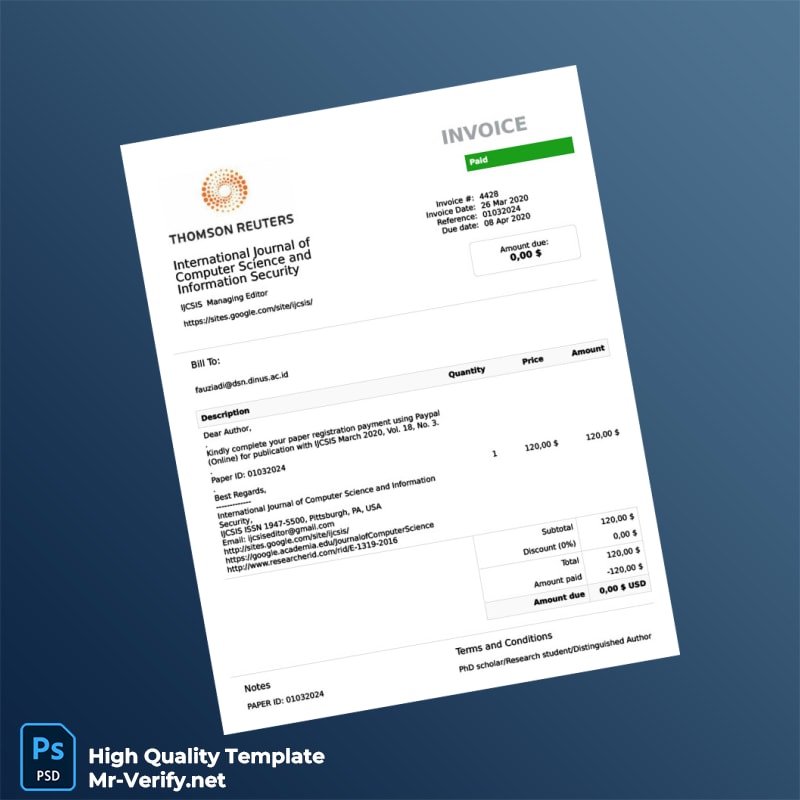 USA International Journal of Computer Science and Information Security Invoice Template in Word and PDF Formats