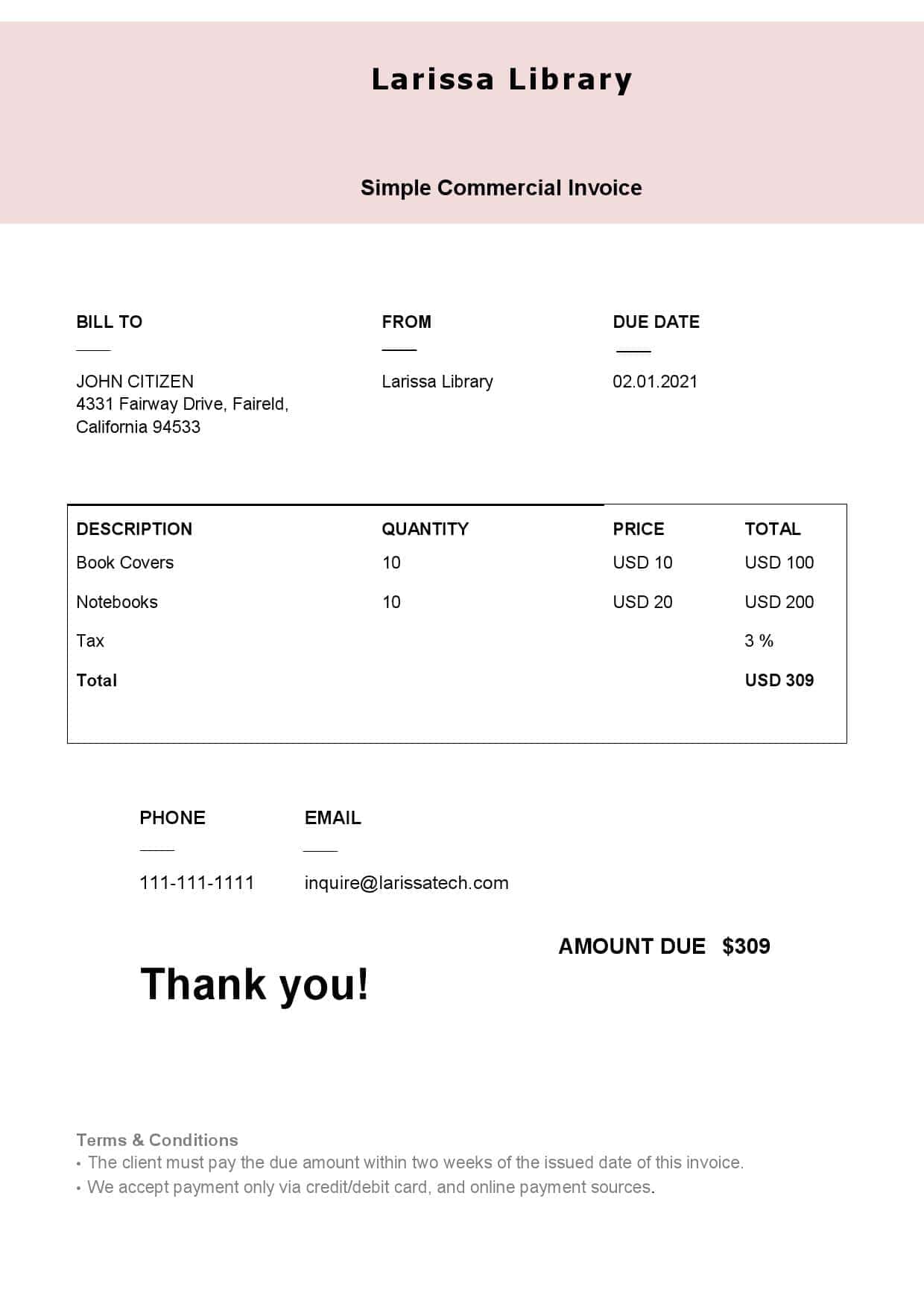 USA Larissa Library Invoice Template for Efficient and Professional Business Operations