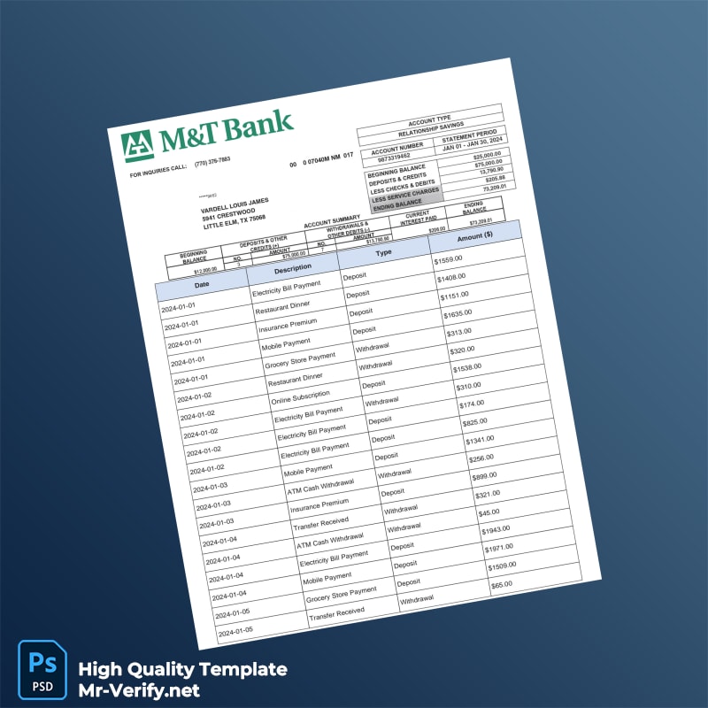USA M T Bank Statement Template: Your Quick Solution for Professional Document Needs