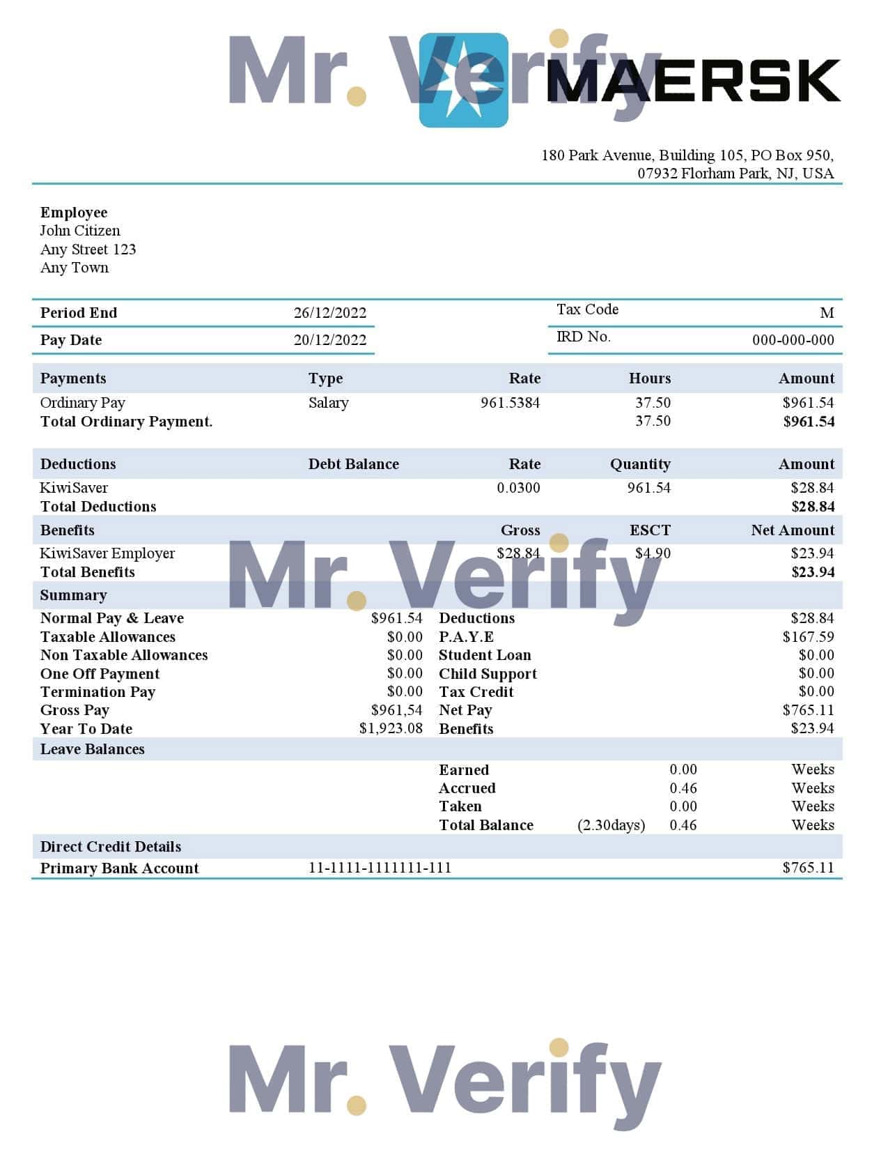 USA Maesk shipping company Editable Pay Stub PDF Template :