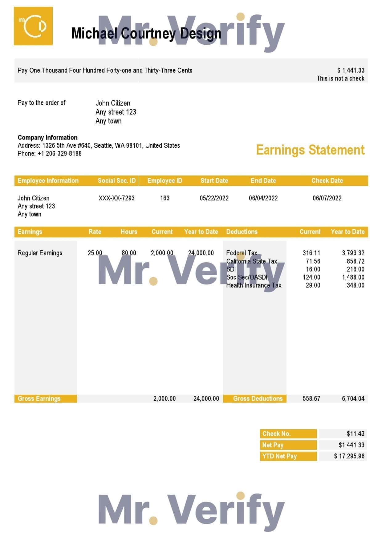 USA Michael Courtney Design graphic company Word Fillable Pay Stub Proof :
