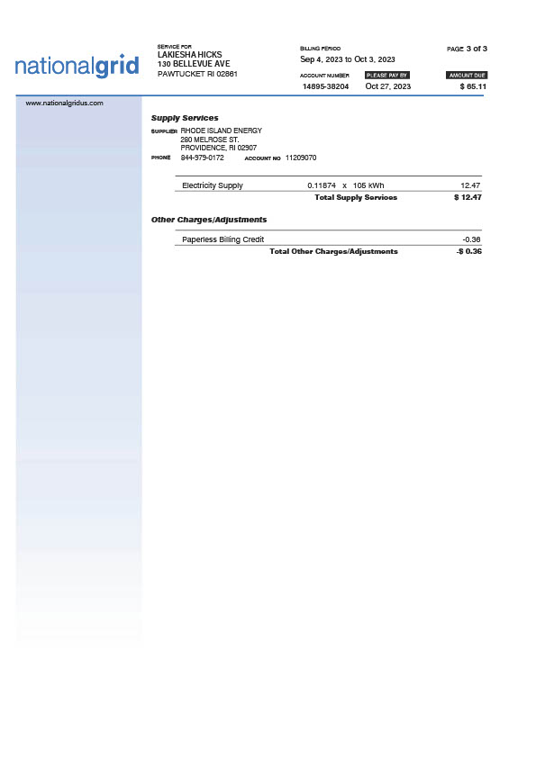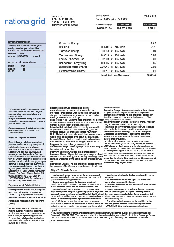 USA National Grid Editable Electricity Bill Template in Word and PDF formats 3 page