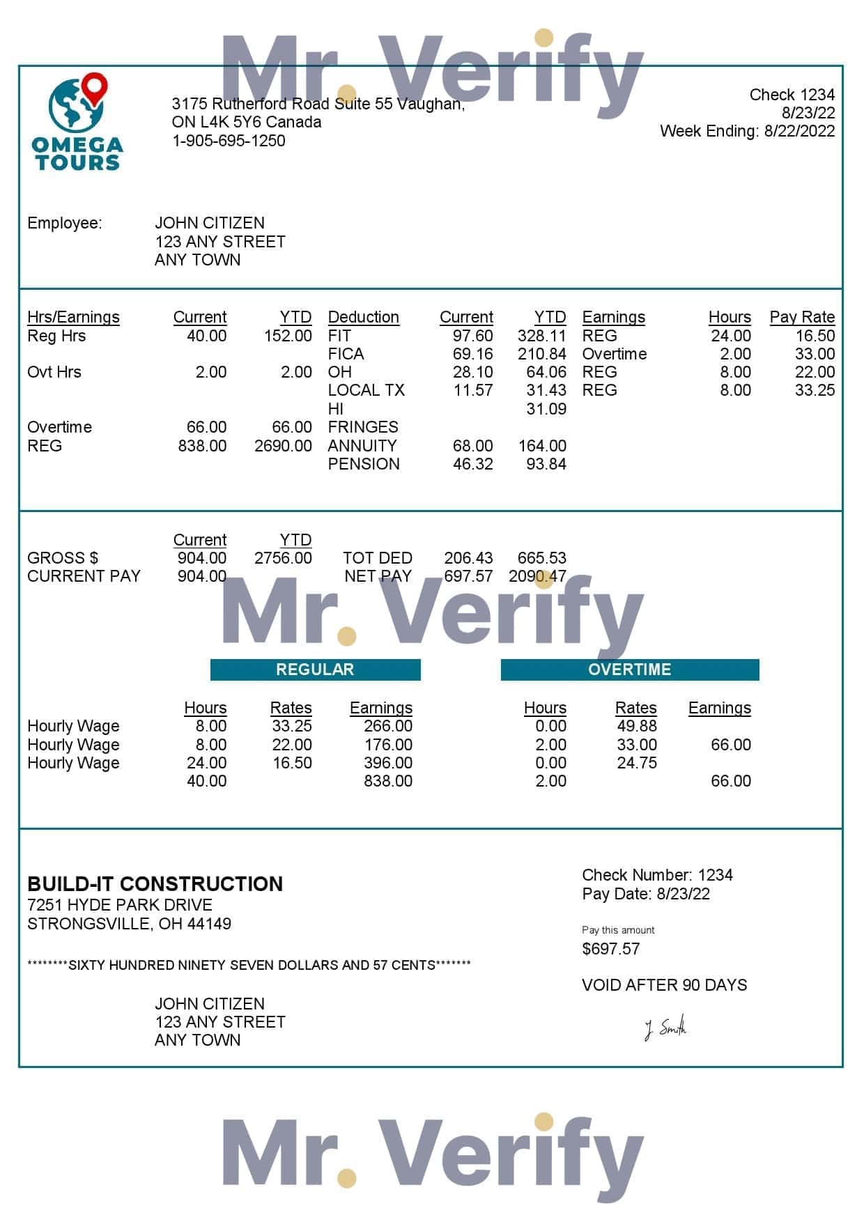 USA Omega Tours tourism company Word Fillable Pay Stub Proof :