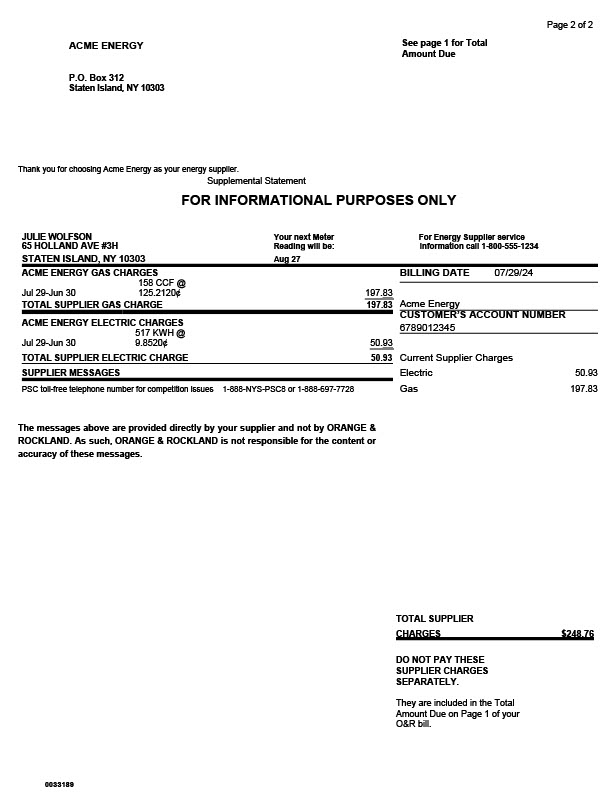 USA Orange Rockland Editable Utility Bill Template in Word and PDF formats 2 page
