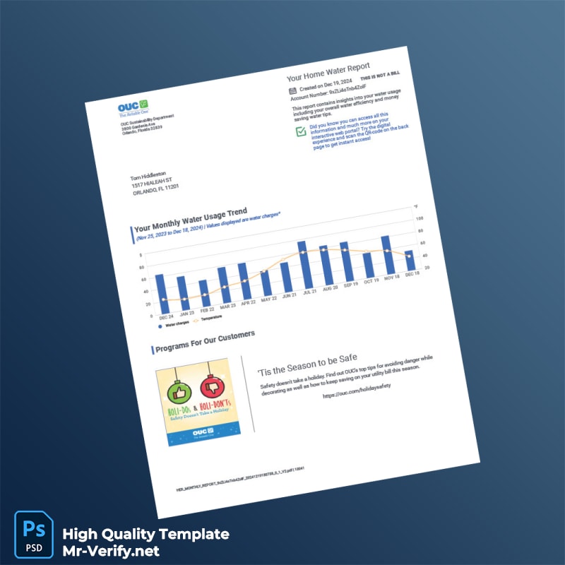 USA OUC Editable Water Bill Template – Effortless Replacement for Utility Documentation