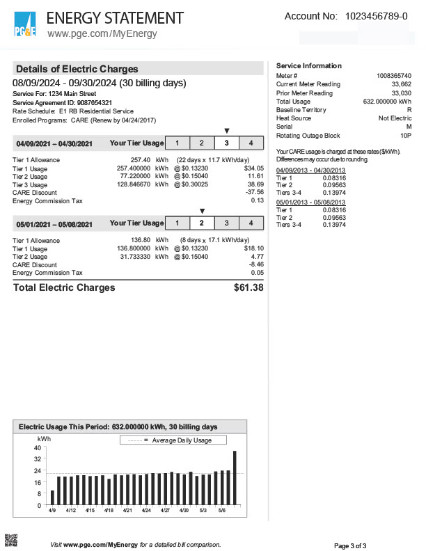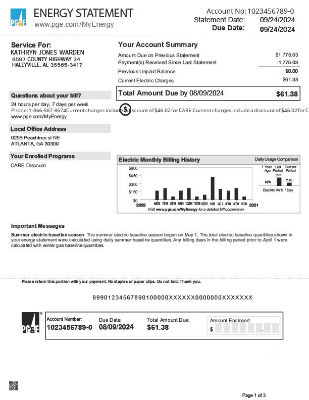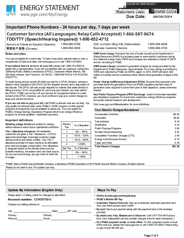 USA Pacific Gas And Electric Company Editable Energy Statement Template