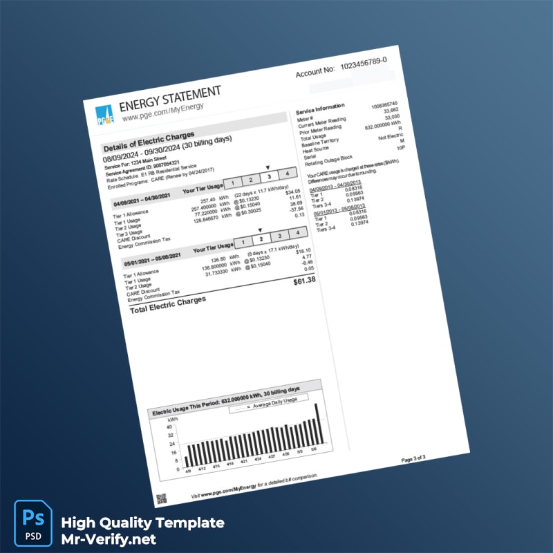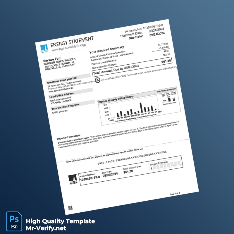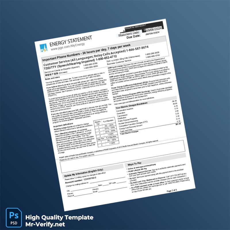 Are you struggling to verify your address due to lost or outdated utility documents? The USA Pacific Gas And Electric Company Editable Energy Statement Template is here to help you overcome this challenge easily and efficiently. Our template is crafted with professionals in mind, ensuring you can present a legitimate proof of address quickly and smoothly.