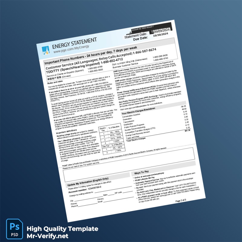 Be the first to review “USA Pacific Gas And Electric Company Editable Energy Utility Bill Template in Word and PDF formats 3 page”