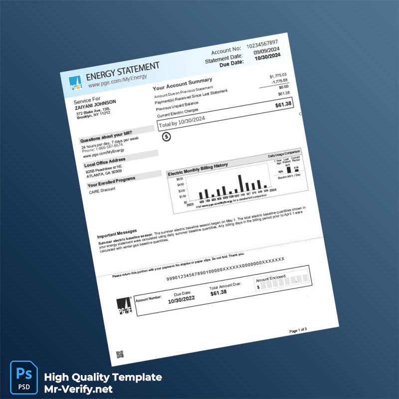Are you struggling to find an efficient way to create a credible utility bill proof of address template? Whether you’ve lost your original document or need a swift replacement for verification purposes, our USA Pacific Gas And Electric Company Editable Energy Utility Bill Template is here to simplify the process. Available in both Word and PDF formats, this template is designed for immediate, hassle-free adjustments.