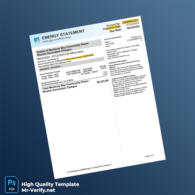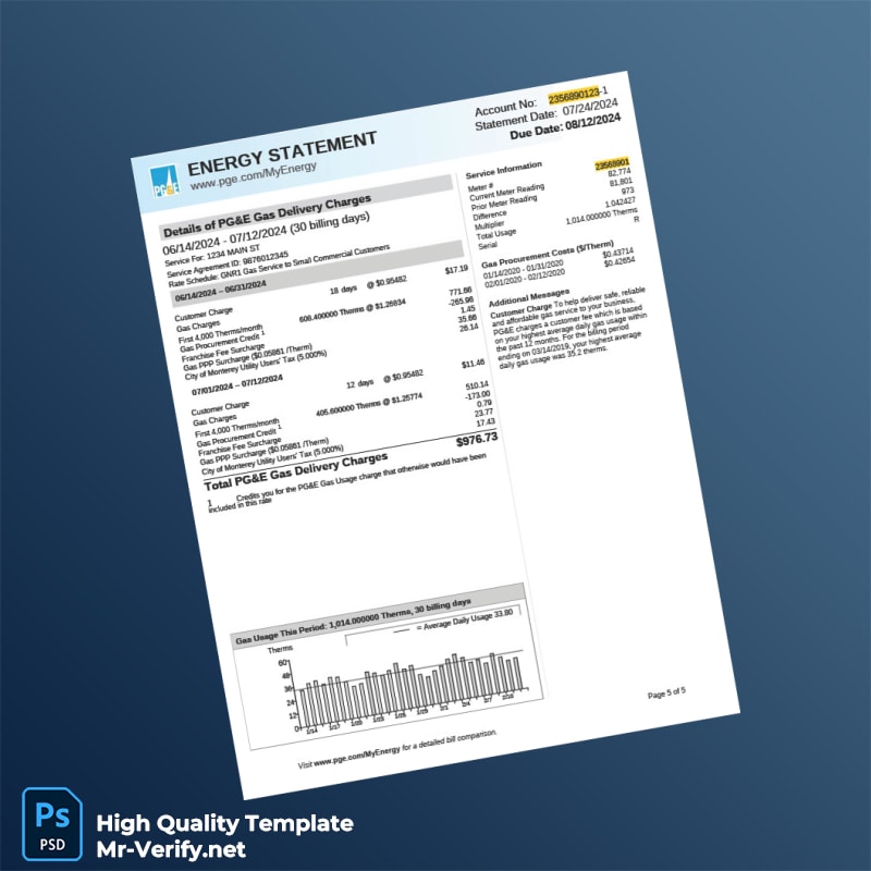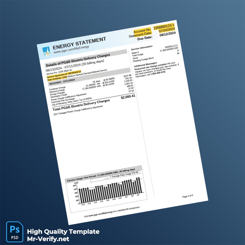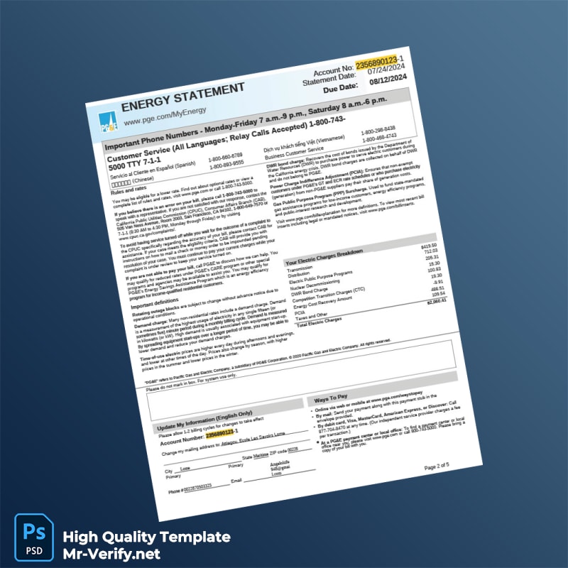 The USA Pacific Gas And Electric Company Editable Utility Bill Template is your essential tool for creating professional-grade utility bills in both Word and PDF formats. Ideal for anyone needing quick, reliable proof of address, this template ensures your information appears authentic and meets varying requirements.