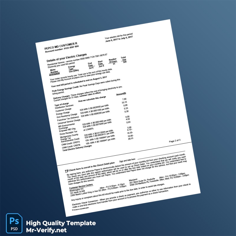 USA PEPCO Editable Electricity Bill Template in Word and PDF Formats