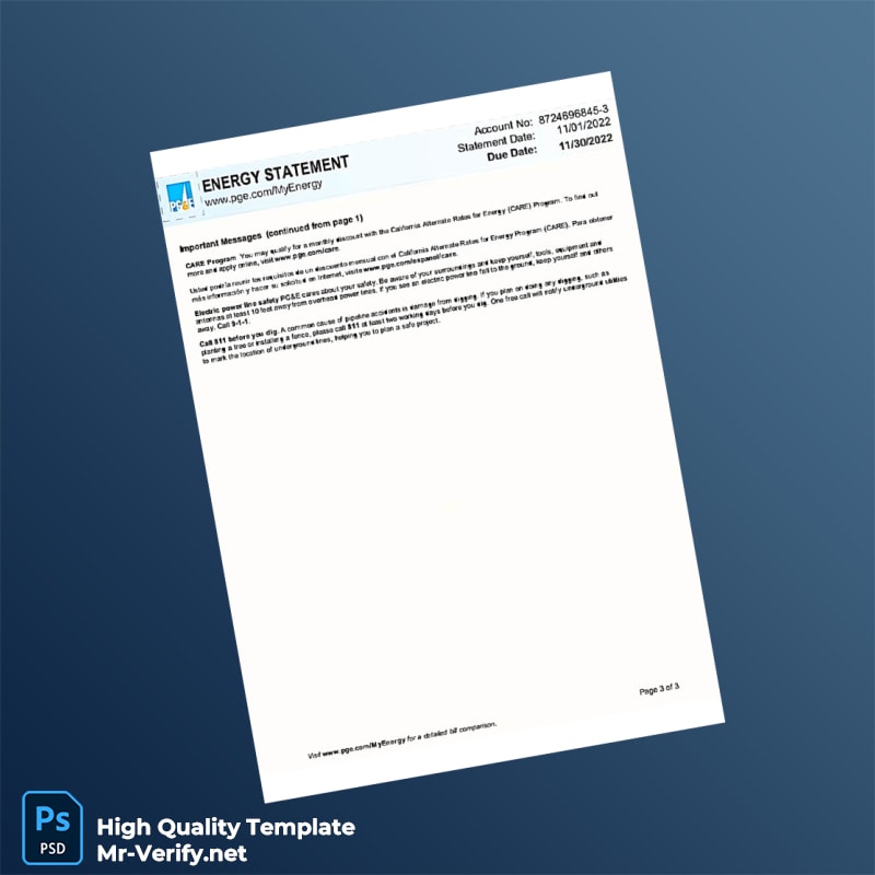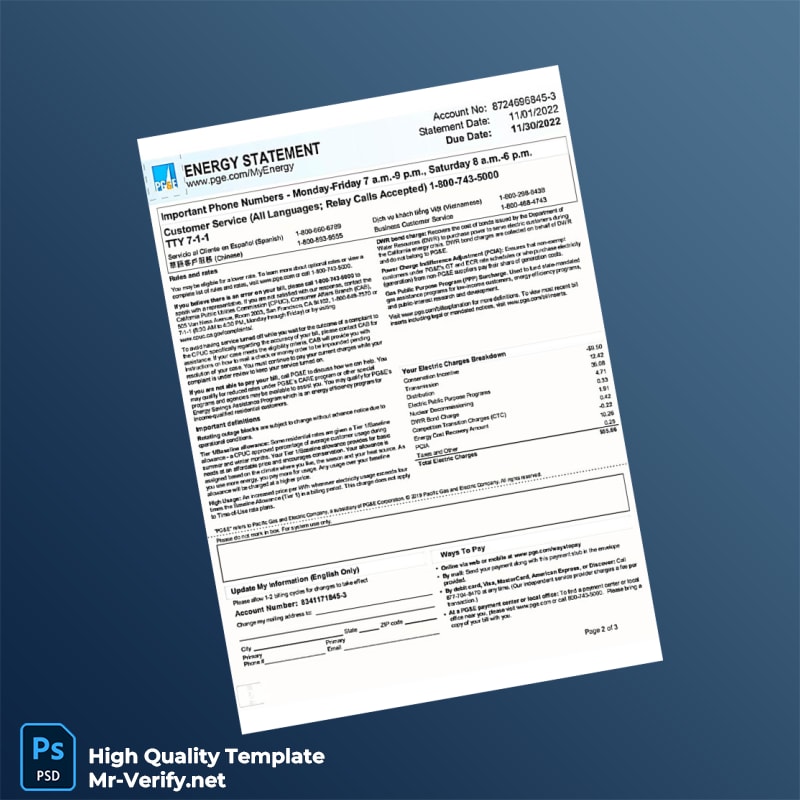 Don’t let time constraints or lost documents hold you back any longer. Optimize your paperwork process with our USA PG E Editable Utility Energy Bill Template. To explore more options, check our entire selection in the utility bill template category. You might also find our California Escondido City Utility Bill Template and Philadelphia Xfinity Utility Bill Template to be perfect companions to your new bill.