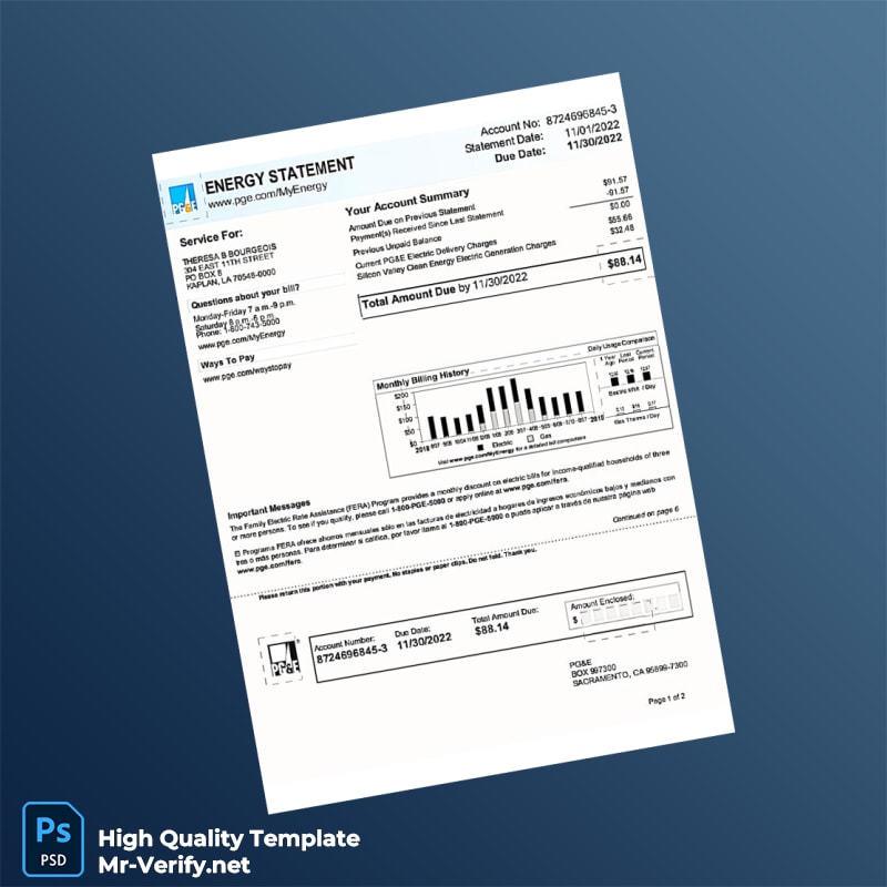 Need a quick, reliable solution for proof of address? The USA PG E Editable Utility Energy Bill Template in both Word and PDF formats is your ideal choice. Perfect for professionals who require fast, effective restoration of lost or stolen documents, this template takes the hassle out of creating essential paperwork.