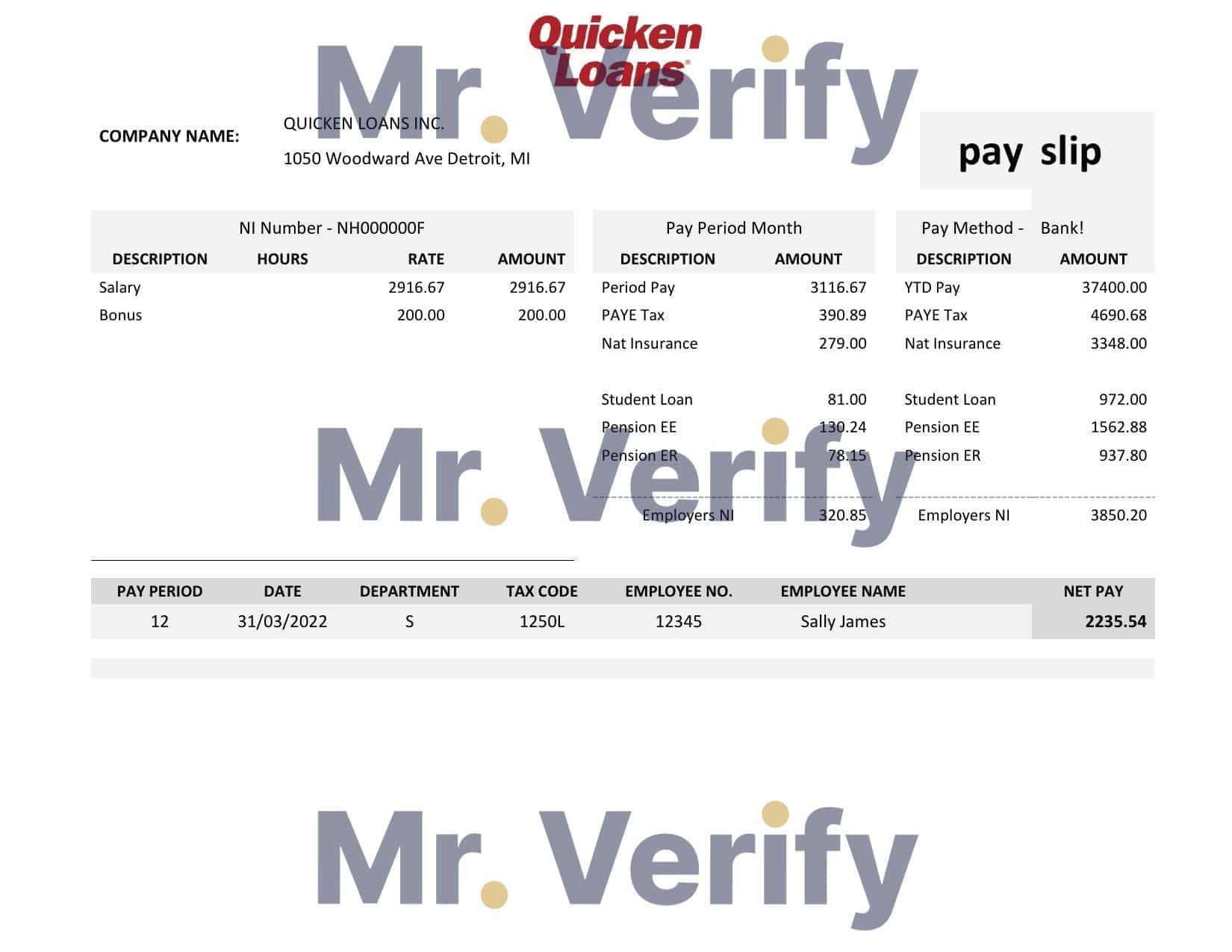 USA Quicken Loans Inc. mortgage loan company Word Fillable Pay Stub Proof :