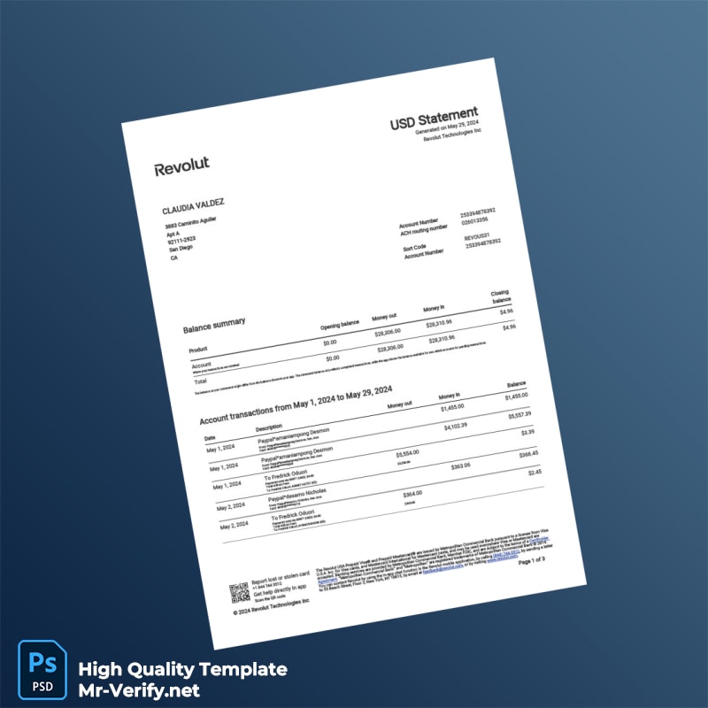 By choosing our USA Revolut Account Statement Template, you will save time and reduce stress, enabling you to focus on what truly matters: achieving your professional goals.