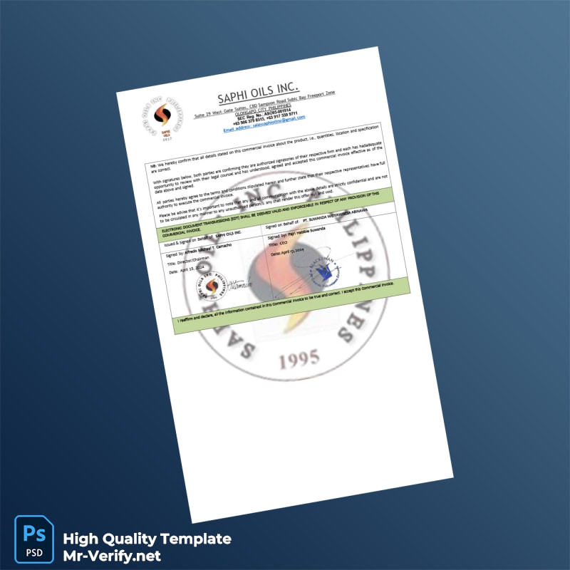 USA Saphi Oils Inc Commercial Invoice Template: Streamline Your Business Billing