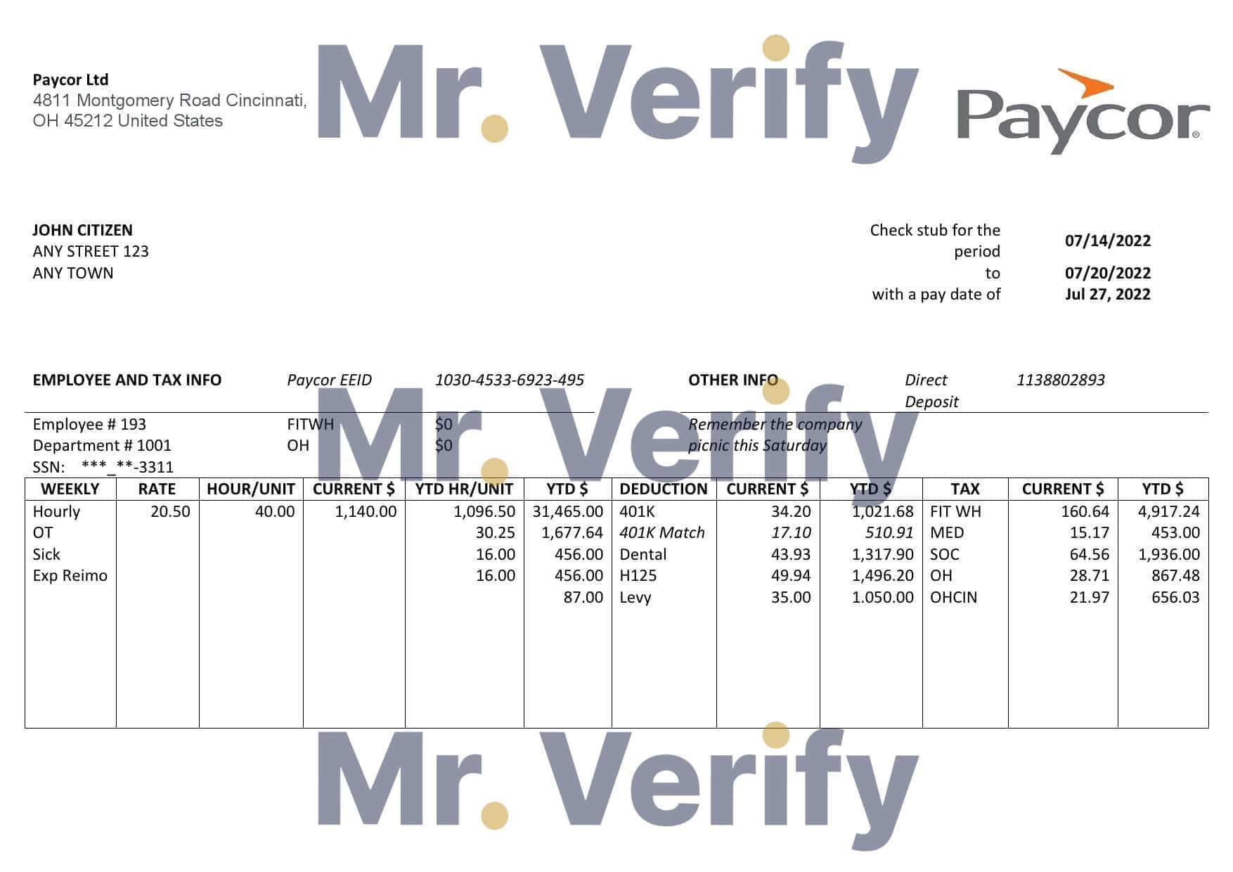 USA software technologies company employee sheet Word Fillable Pay Stub Proof :