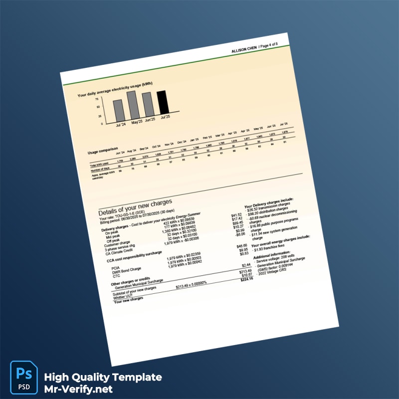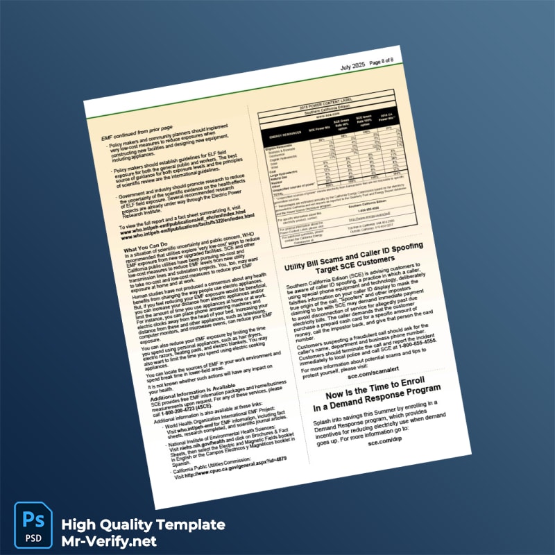 USA Southern California Edison Editable Electricity Bill Template