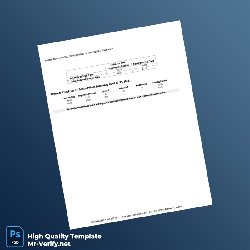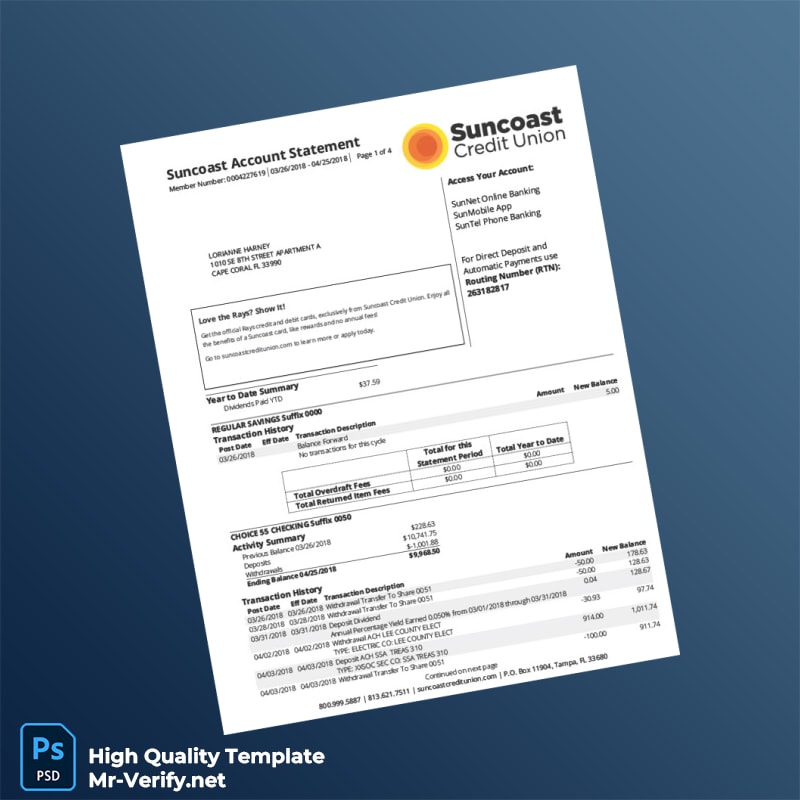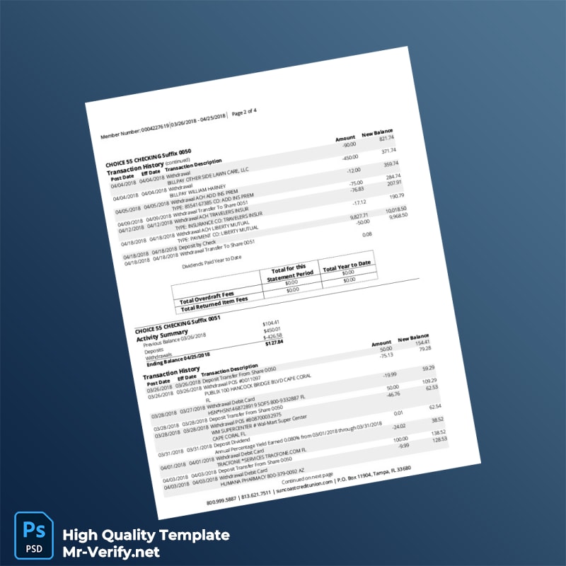 Whether you’re a freelancer, a business professional, or someone in need of quick document replacements, the USA Suncoast Bank Statement Template is tailored for you. It effectively addresses common challenges such as lost documents, urgent replacements, or preparing essential files for validation purposes.