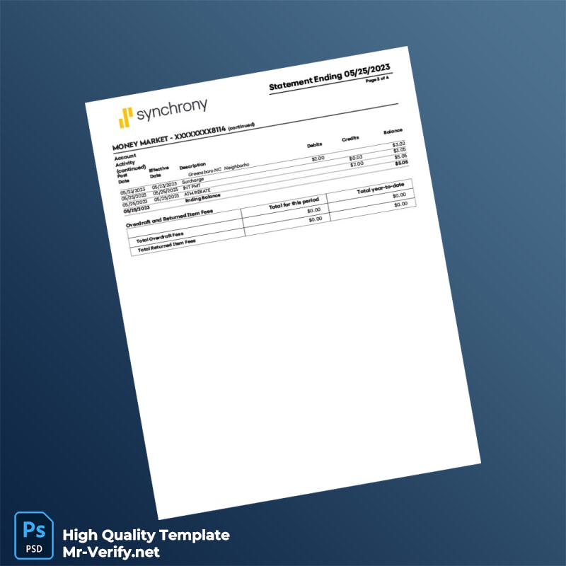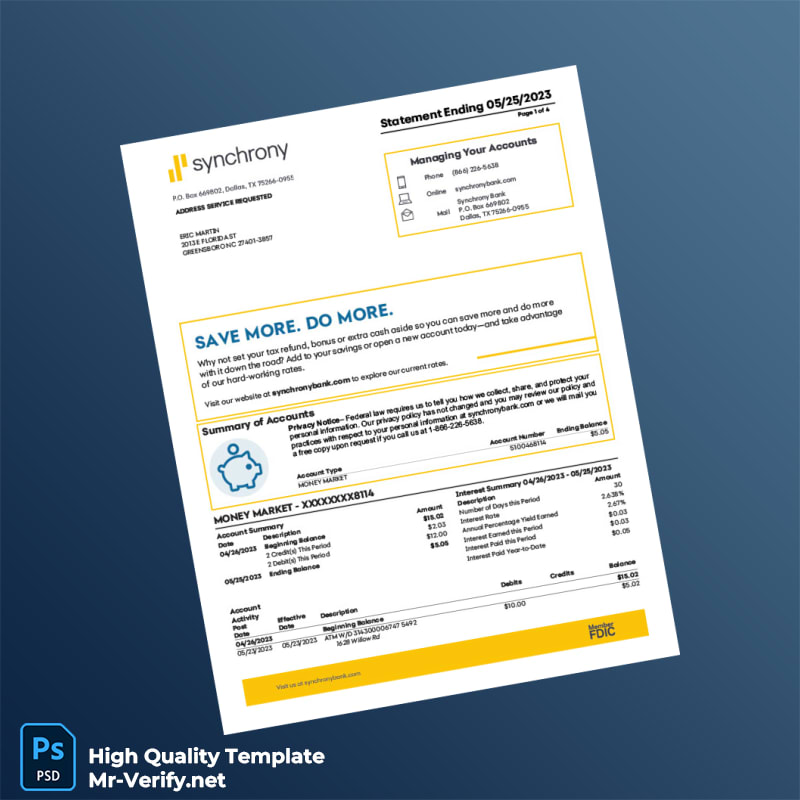 USA Synchrony Bank Statement Template in Word and PDF Formats