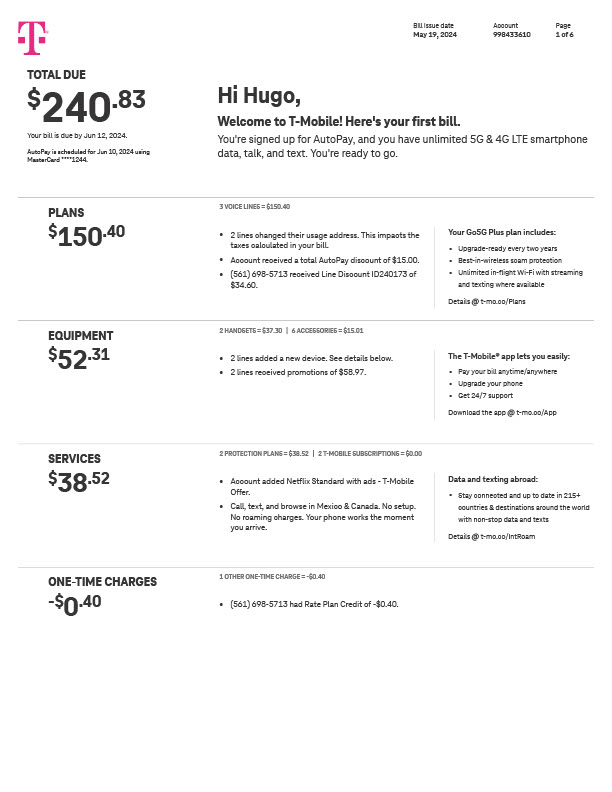 The USA T Mobile Us Editable Summary Bill Template boasts several valuable features, designed to cater to your professional needs: