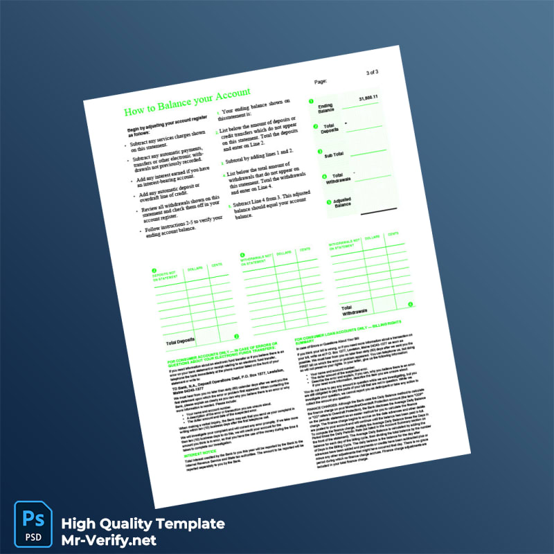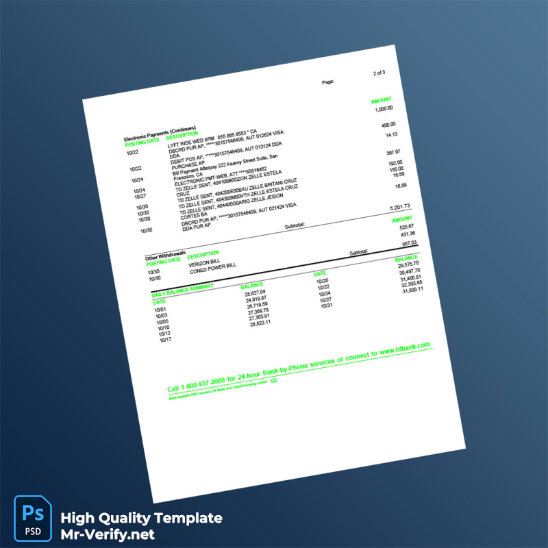 USA TD Bank Credit Card Statement Template in Word and PDF Formats