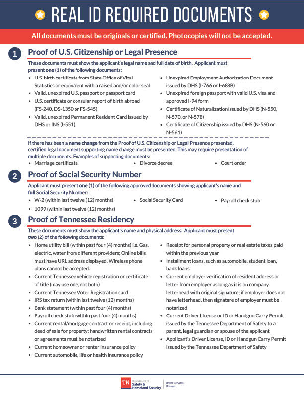 USA Tennessee Editable REAL ID Requirements Template