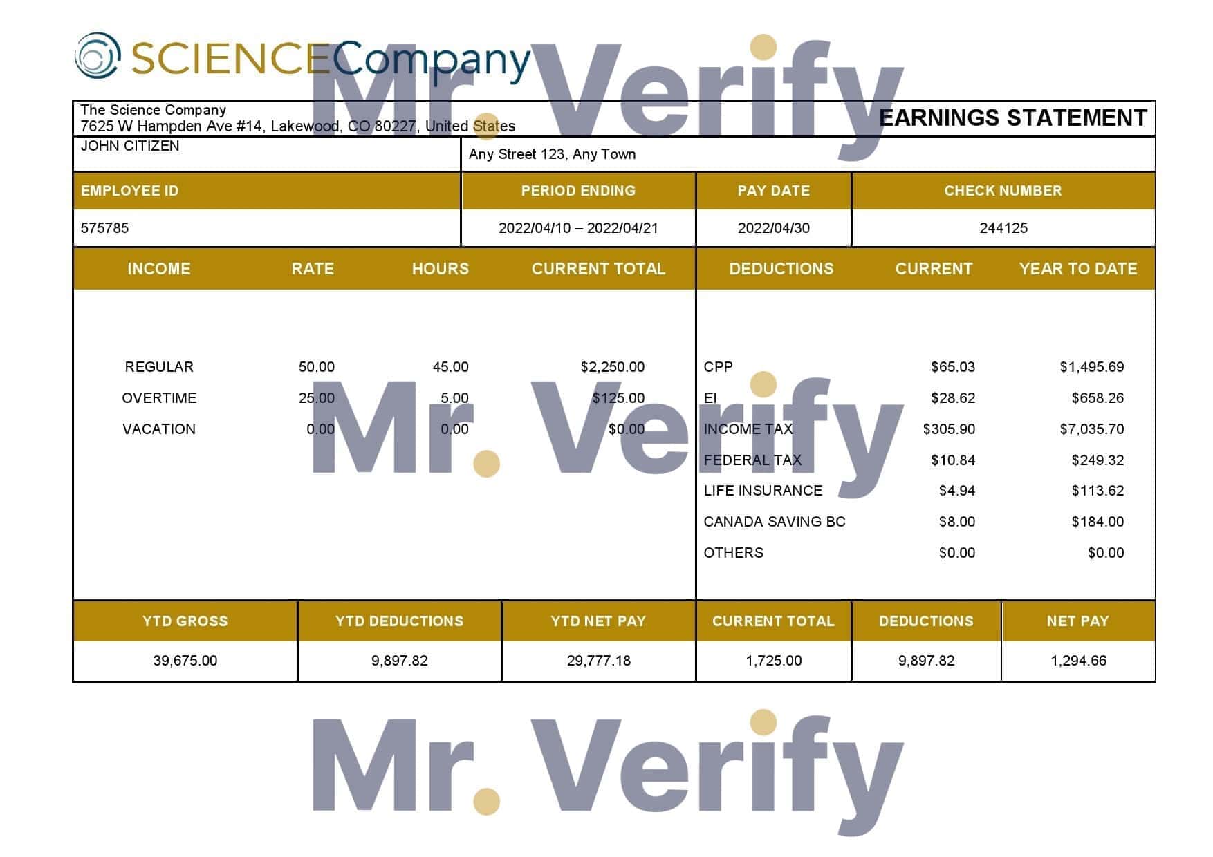 USA The Science Company science Word Fillable Pay Stub Proof :
