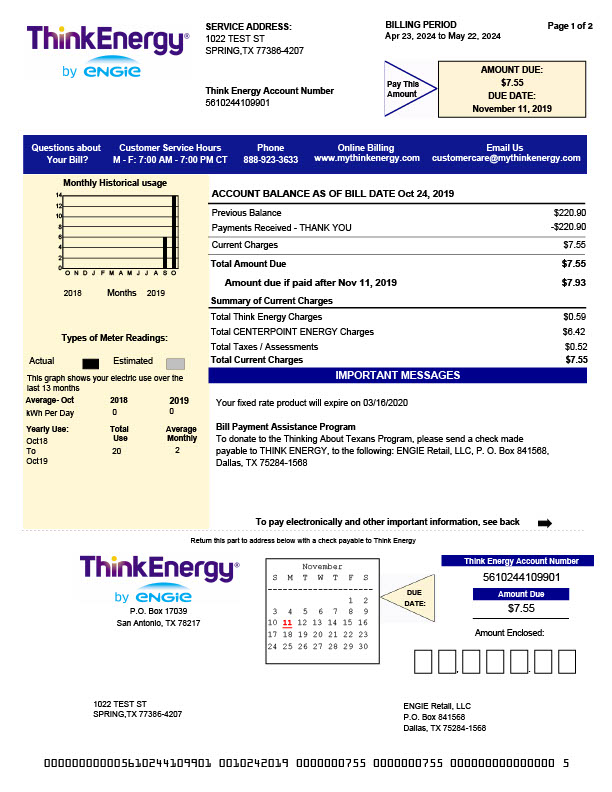 USA Think Energy Editable Electricity Bill Template in Word and PDF formats 2 page