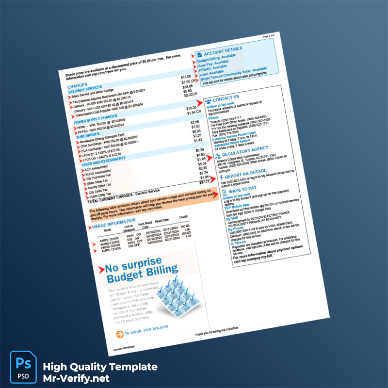 Be the first to review “USA Tucson Electric Power Editable Electricity Bill Template in Word and PDF formats 2 page”