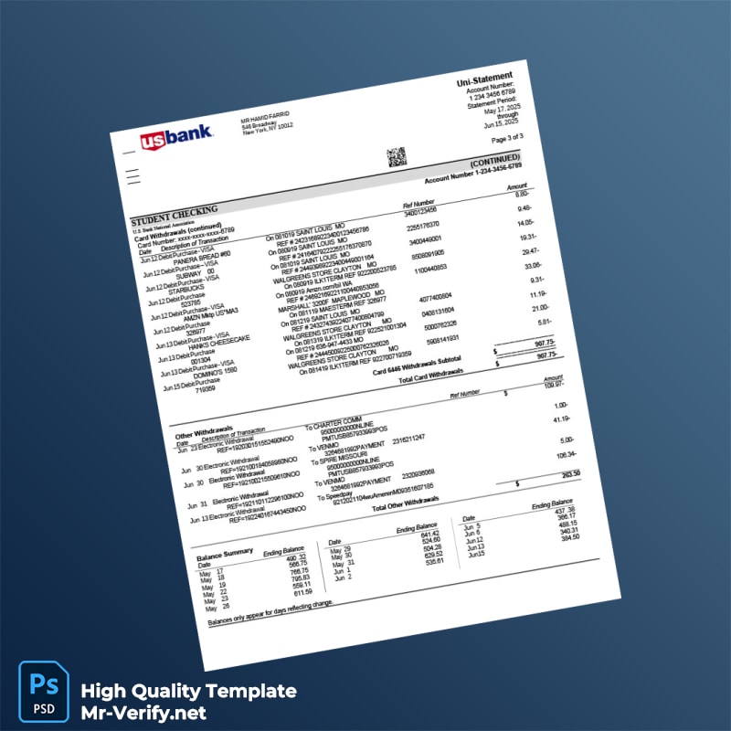 Don’t wait any longer to streamline your financial processes. Choose the USA U S Bank Bank Statement Template today and experience the ease of editable bank statements!