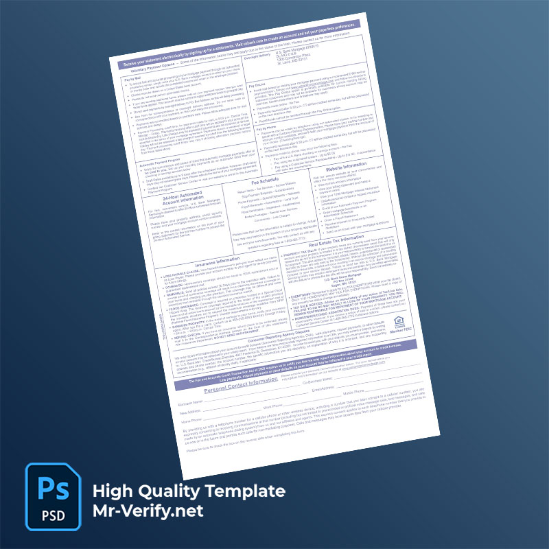 USA U.S. Bank Home Mortgage Editable Mortgage Statement Template in Word and PDF formats