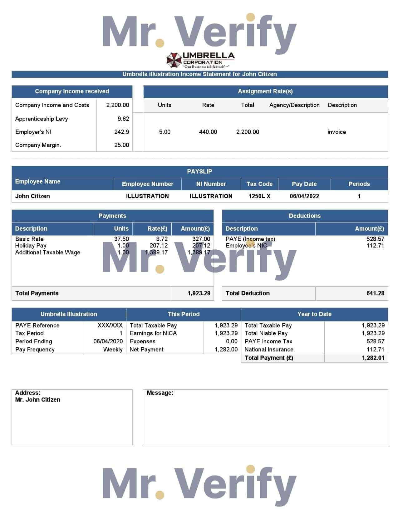 USA Umbrella pharmaceutical company Word Fillable Pay Stub Proof :