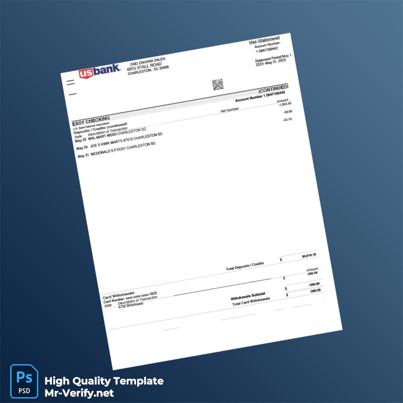 Don’t let the lack of proper documentation hinder your success. Equip yourself with our USA US Bank Bank Statement Template today—your tool for efficient, professional document management. Shop now and unlock the convenience of our templates!