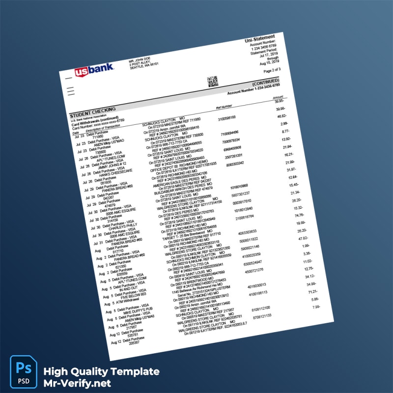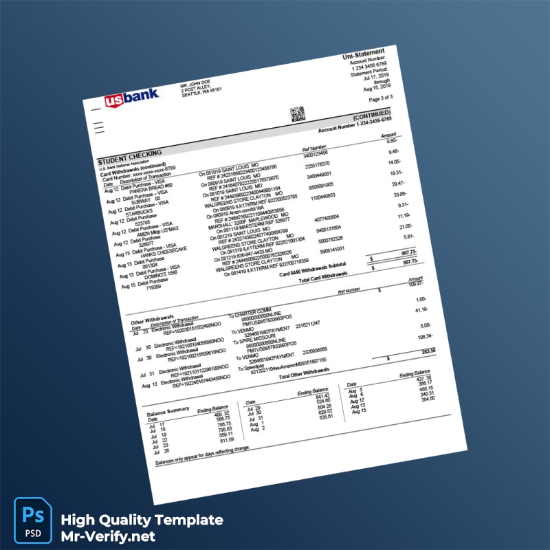 Don’t let missing documents hold you back. Enhance your professional toolkit and simplify your banking needs with our USA US Bank Statement Template. Get started today and experience the ease and certainty of having your financial documentation at your fingertips!
