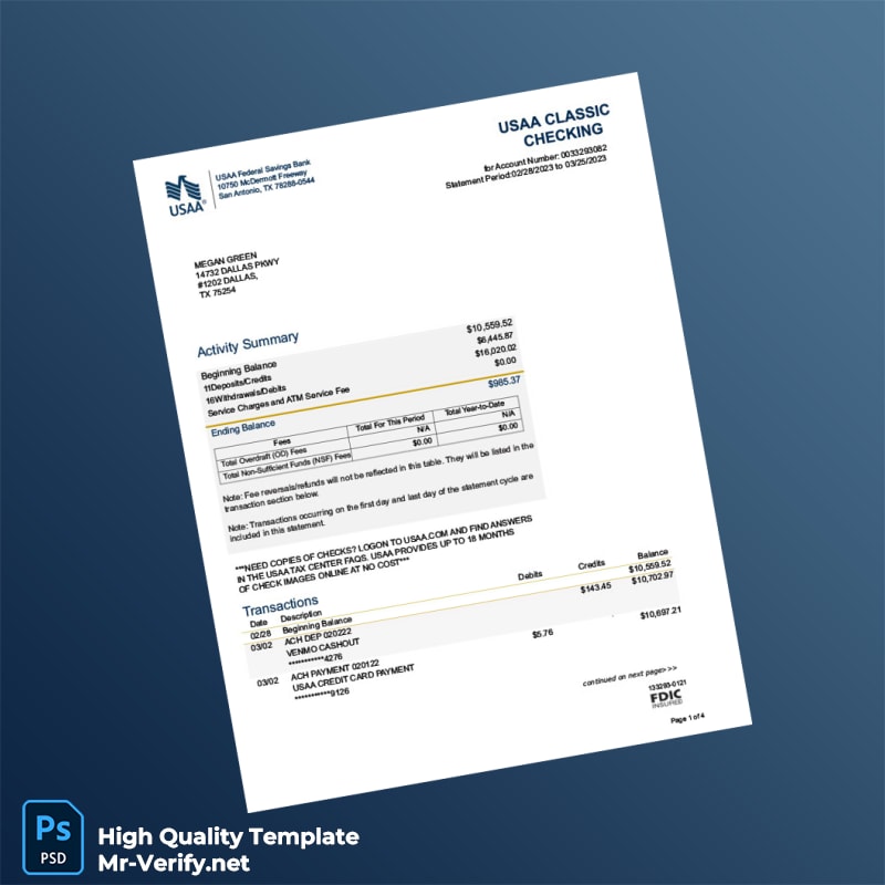 In today’s fast-paced world, missing financial documentation can lead to delays and headaches. Whether you’ve lost your bank statement, need to replace an expired one, or require documentation for an urgent loan application, our USA USAA Federal Savings Bank Bank Statement Template in both Word and PDF formats is here to simplify the process.