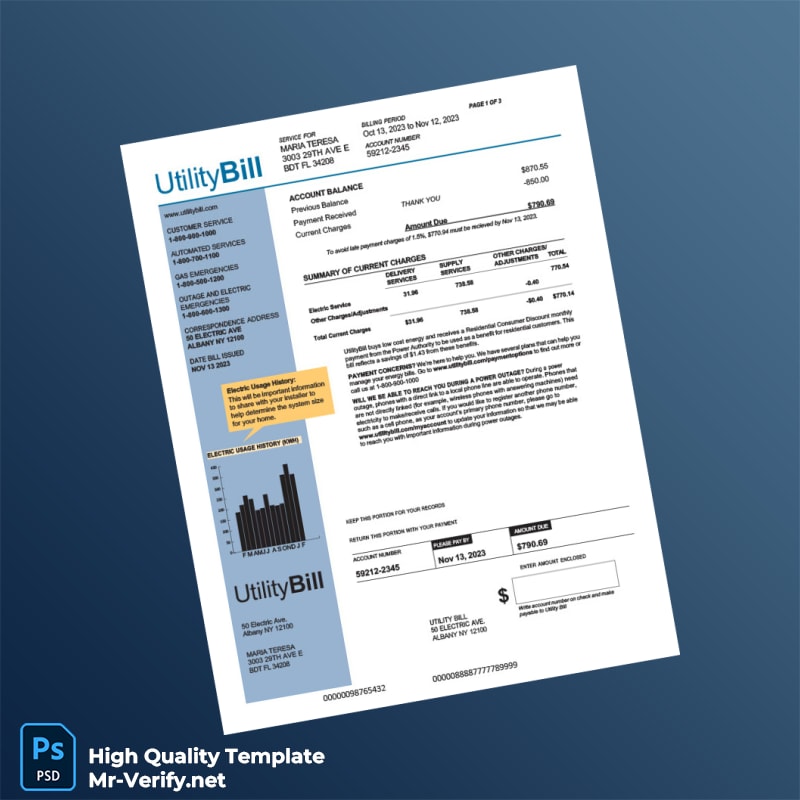 Streamline Your Document Verification with Our USA Utility Bill Editable Template