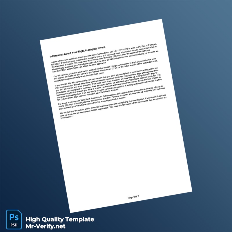 Don’t let unexpected delays hold you back. Access the USA Varo Bank Statement Template now and experience hassle-free document creation today. Your professional image depends on it!