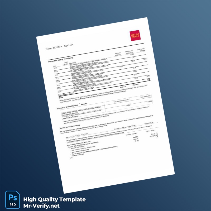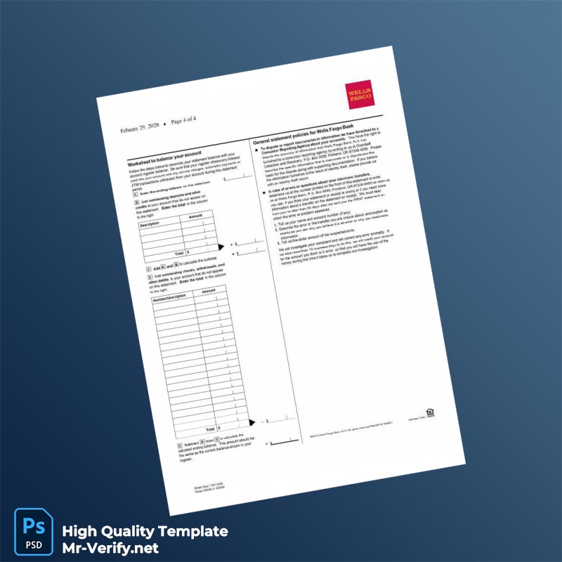 Order your USA Wells Fargo Bank Statement Template now and experience the convenience of having your professional documents ready at your fingertips!