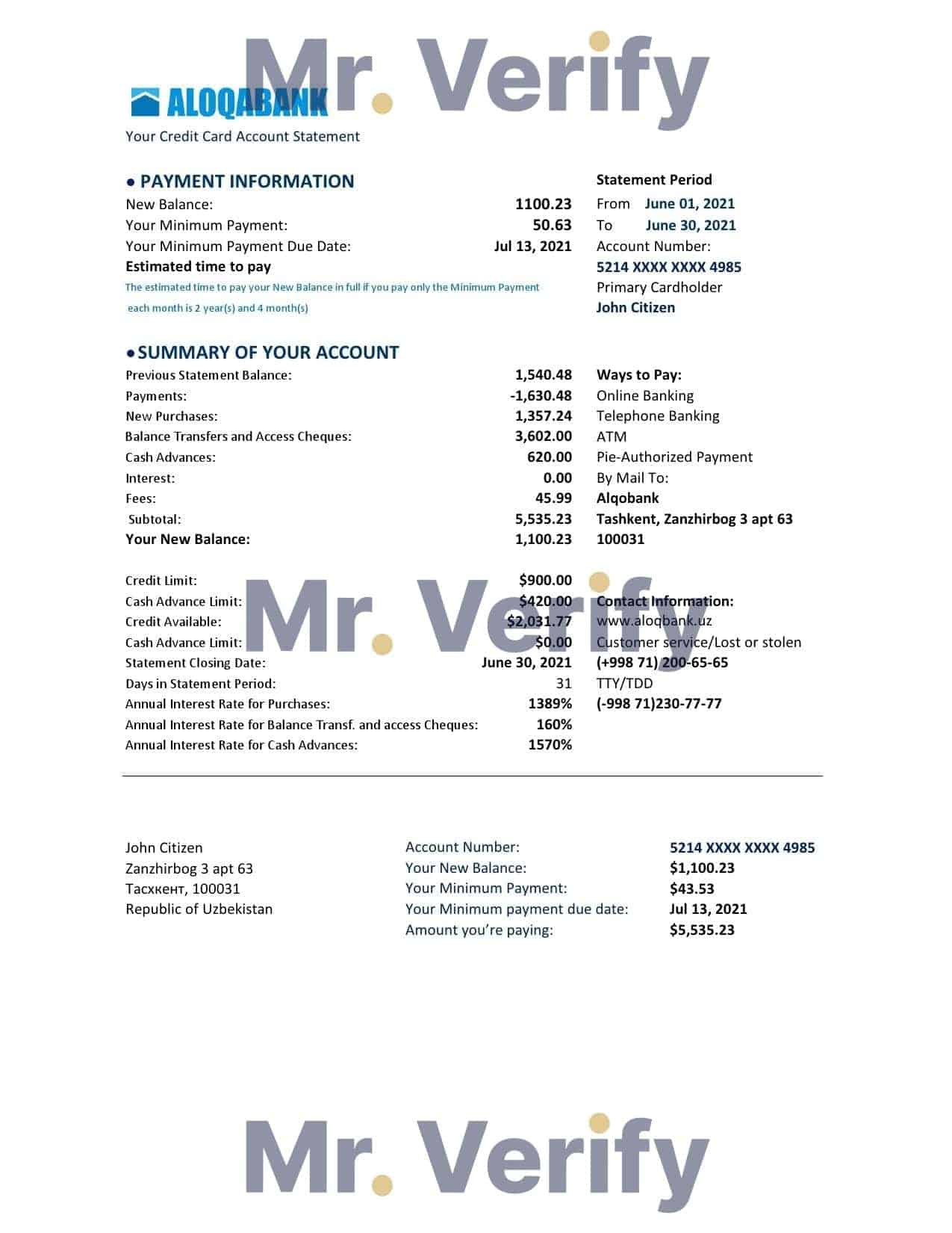 Editable-docs offers a high-quality, fully customizable Uzbekistan Aloqabank Bank Statement Template in Microsoft Excel. Easily modify all essential details such as name, address, ID number, date of birth, height, weight, expiration date, and photos. This layer-based template ensures compatibility with Excel editing software, providing a seamless editing experience. Beware of low-quality free templates that could risk account suspension.